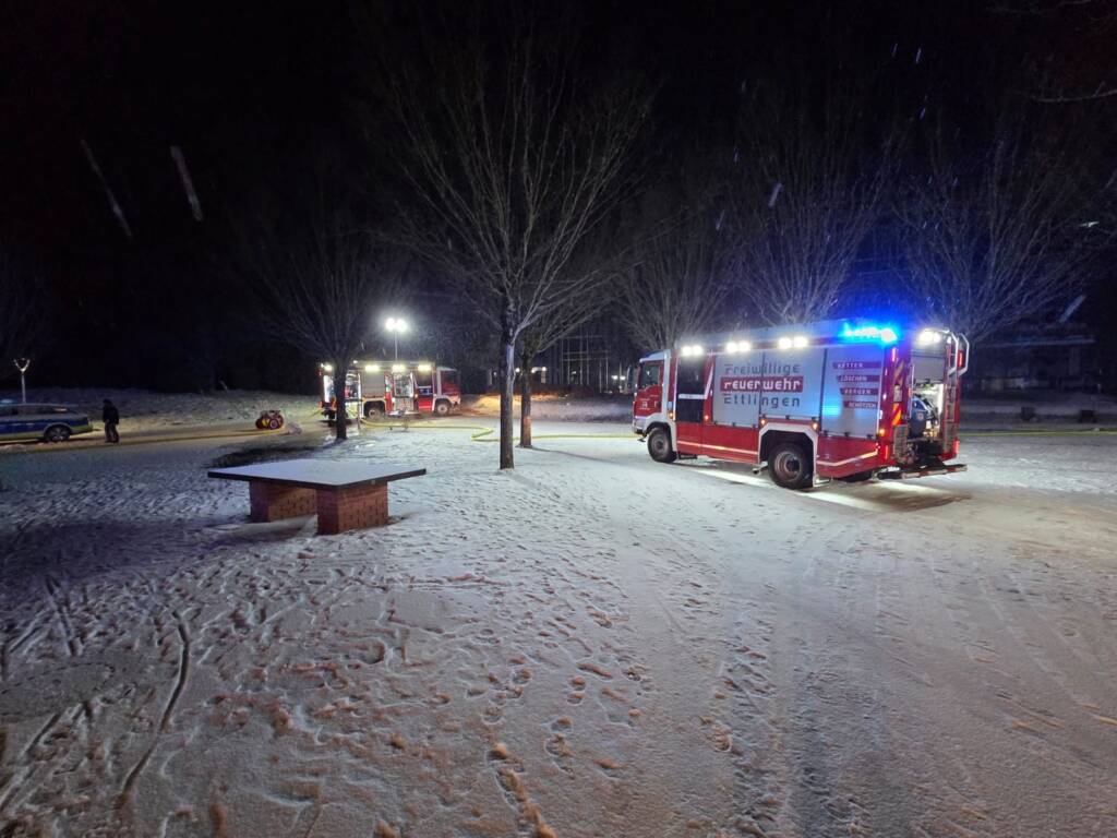 Der Rettungsdienst war vorsorglich mit einem Rettungswagen anwesend. Die Polizei war mit drei Streifenwagenbesatzungen des Polizeireviers Ettlingen sowie zwei Beamten der Kriminalpolizei im Einsatz. Die Kriminalpolizei hat noch in der Nacht die Ermittlungen zur Brandursache aufgenommen.