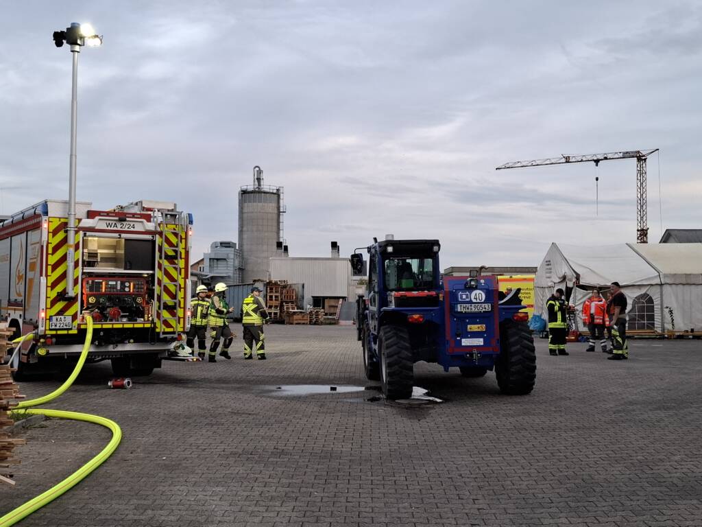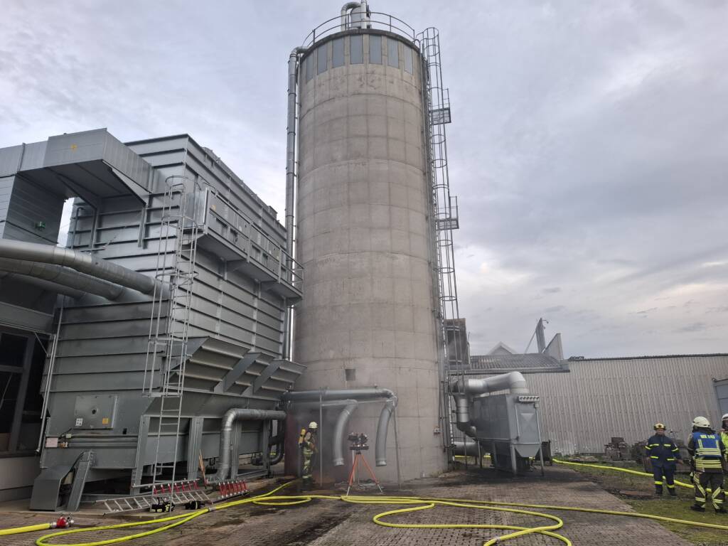Notrufteilnehmer meldeten um 14:58 Uhr der Integrierten Leitstelle Karlsruhe eine stärkere Rauchentwicklung aus einem Silo eines holzverarbeitenden Industrieunternehmens in der Weinbrennerstraße im Ortsteil Wiesental der Stadt Waghäusel. Die ersten Feuerwehrkräfte mit mehreren Löschfahrzeugen und der mitalarmierten Drehleiter waren bereits nach 8 Minuten nach der Alarmierung an der Einsatzstelle. Stadtkommandant Dieter Niemann war ebenfalls frühzeitig vor Ort und übernahm die Einsatzleitung. Bei der ersten Erkundung wurde eine Brandentwicklung im unteren Bereich eines zu drei Viertel mit Holzspänen gefüllten Silos vorgefunden. Weiter wurde mit der Drehleiter der obere Bereich des 18 m hohen Silos abgesucht. „Um besser die Flammen im Bereich der Förderschnecke ablöschen zu können, mussten mehre Revisionsklappen des Silos geöffnet werden“ so Kommandant Dieter Niemann. Durch die nachalarmierte Führungsgruppe der Feuerwehr Waghäusel wurden weitere Löschfahrzeuge mit Atemschutzgeräterinnen und Atemschutzgeräteträger sämtlicher Feuerwehrabteilungen der Stadt Waghäusel angefordert. Durch die technischen Dienste der Stadt Waghäusel wurden die umliegenden Straßenzüge für den Durchgangsverkehr gesperrt, um eine Behinderung der umfangreichen Löschmaßnahmen auszuschließen. Die klimmenden Holzspäne im Silo mussten mühsam von über 20 Einsatztrupps unter Atemschutz abgelöscht und auseinandergezogen werden. Wegen des hohen Bedarfs an Atemschutzausrüstung wurde der Abrollbehälter Atemschutz der Feuerwehr Philippsburg sowie weitere Feuerwehrkräfte mit Atemschutzausbildung aus Philippsburg und Oberhausen-Rheinhausen angefordert. Zur Unterstützung der arbeitsintensiven Löscharbeiten unterstützte das Technische Hilfswerk Ortsverband Waghäusel mit einem Technischen Zug mit der Fachgruppe Notversorgung und Notinstandsetzung sowie der Fachgruppe Räumen. Eingesetzt wurden ein Radlader und ein Teleskoplader zum Abtransport der abgelöschten Holzspäne. Für die Absaugung im oberen Bereich des Silos wurde ein Saugbaggerfahrzeug eines örtlichen Entsorgungsunternehmen eingesetzt. Weiter unterstützte ein Radlader vom Bauhof der Stadtverwaltung Waghäusel die Einsatzmaßnahmen. Im weiteren Verlauf des Einsatzes gegen 04.12 Uhr konnte das Silo größtenteils ausgeräumt werden und mit Wasser ausgespült werden. Gegen 08:30 Uhr führten Einsatzkräfte der Feuerwehr Waghäusel eine Brandnachschau am Einsatzobjekt durch und stellten keine Auffälligkeiten fest.
