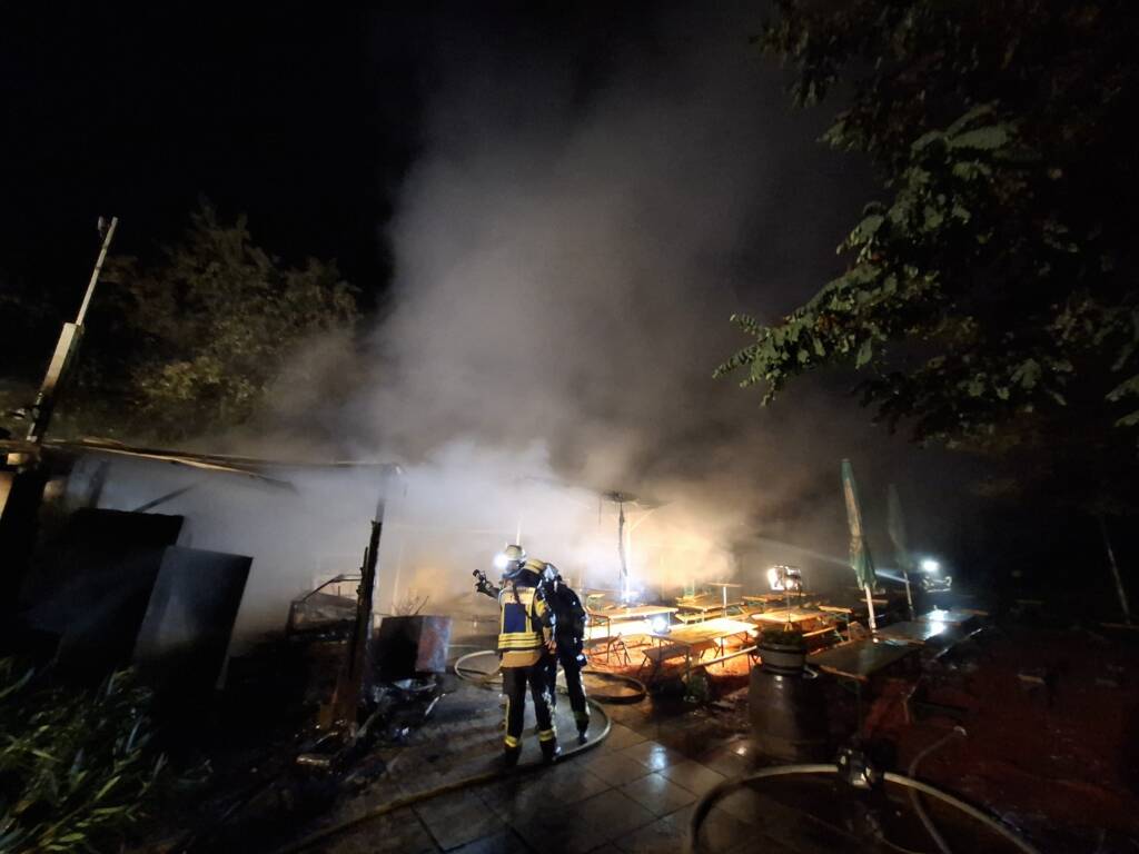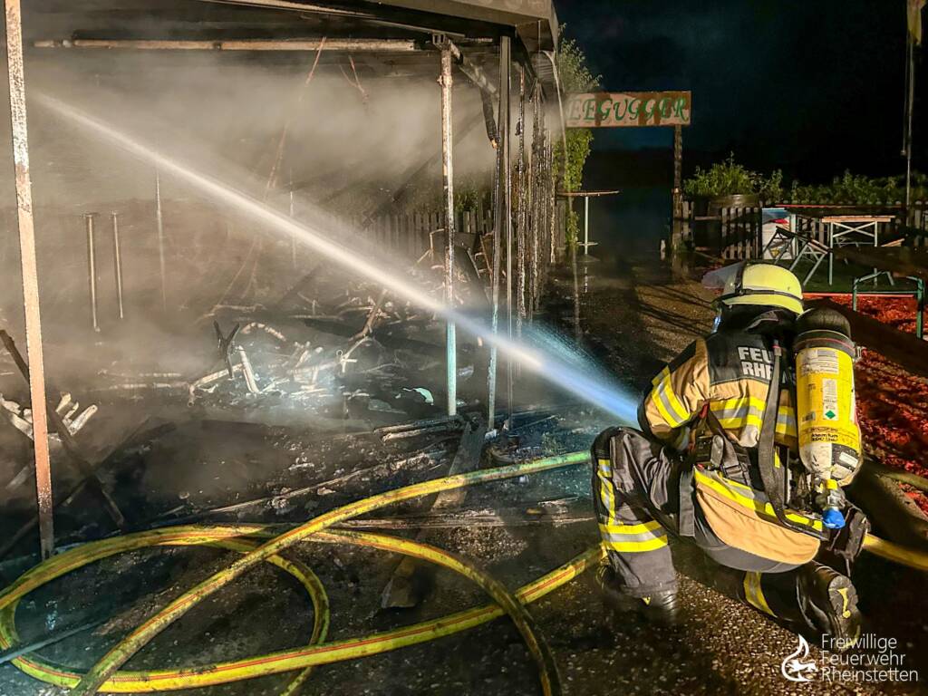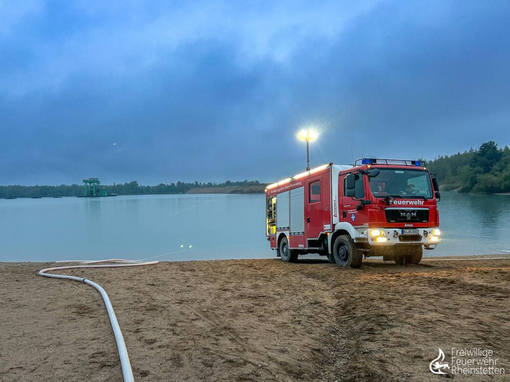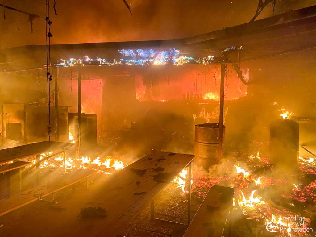 Gegen 02:19 Uhr meldete eine Notrufteilnehmerin einen Feuerschein der Integrierten Leitstelle Karlsruhe im Bereich des Epplesees im Stadtteil Forchheim in Rheinstetten. Durch die anfahrenden Feuerwehrkräfte zur Einsatzstelle wurde aufgrund der starken Brandentwicklung Vollalarm für die Feuerwehr Rheinstetten ausgelöst. Bei Ankunft der ersten Einsatzkräfte brannte die Gaststätte in voller Ausdehnung. Mehrere Einsatztrupps mit Atemschutzausrüstung bekämpften mit 4 Löschrohren an zwei Einsatzabschnitten die Brandentwicklung am Gebäude. Für einen ausreichende Löschwasserversorgung wurden zwei Schlauchleitungen zum 150 m entfernten Seeufer verlegt, hier kamen die Fahrzeugpumpe von einem weiteren Löschfahrzeug und eine transportable Löschwasserpumpe zum Einsatz. Für ausreichenden Nachschub an Atemschutzausrüstung wurde im weiteren Verlauf des Einsatzes der Abrollbehälter Atemschutz der Feuerwehr Ettlingen von der Einsatzleitung angefordert. Weiter wurde der Gerätwagen Einsatzstellenhygiene der Feuerwehr Rheinstetten nachgefordert. Während der Löscharbeiten wurden bis zu sechs Atemschutztrupps eingesetzt. Gegen 03:54 Uhr konnte „Feuer aus“ gemeldet werden und die umfangreichen Nachlöscharbeiten mit der Bekämpfung möglicher Glutnester begannen.