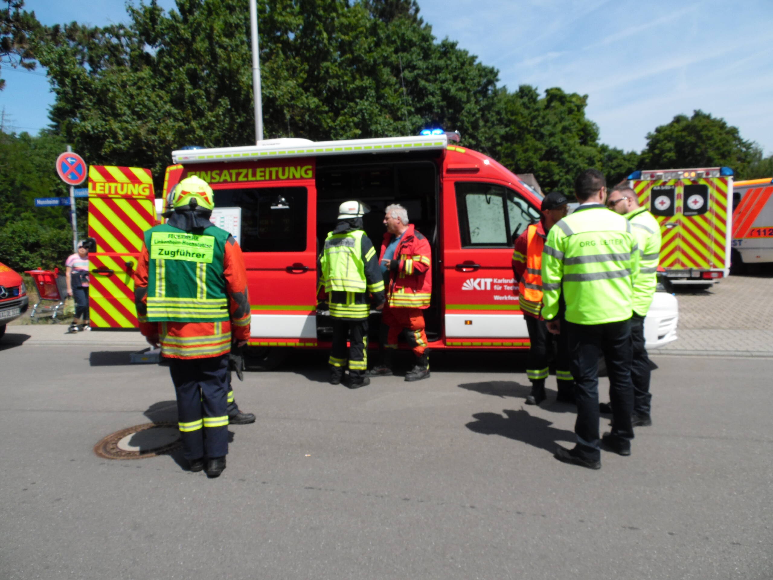 Drei Rettungswagen und ein Notarzteinsatzfahrzeug waren vom Rettungsdienst an der Einsatzstelle. Die DRK-Bereitschaften aus Eggenstein-Leopoldshafen und Stutensee-Blankenloch versorgten die Einsatzkräfte mit Getränken. Als organisatorischer Leiter des Rettungsdienstes war Dennis Schlindwein vom DRK im Einsatz.